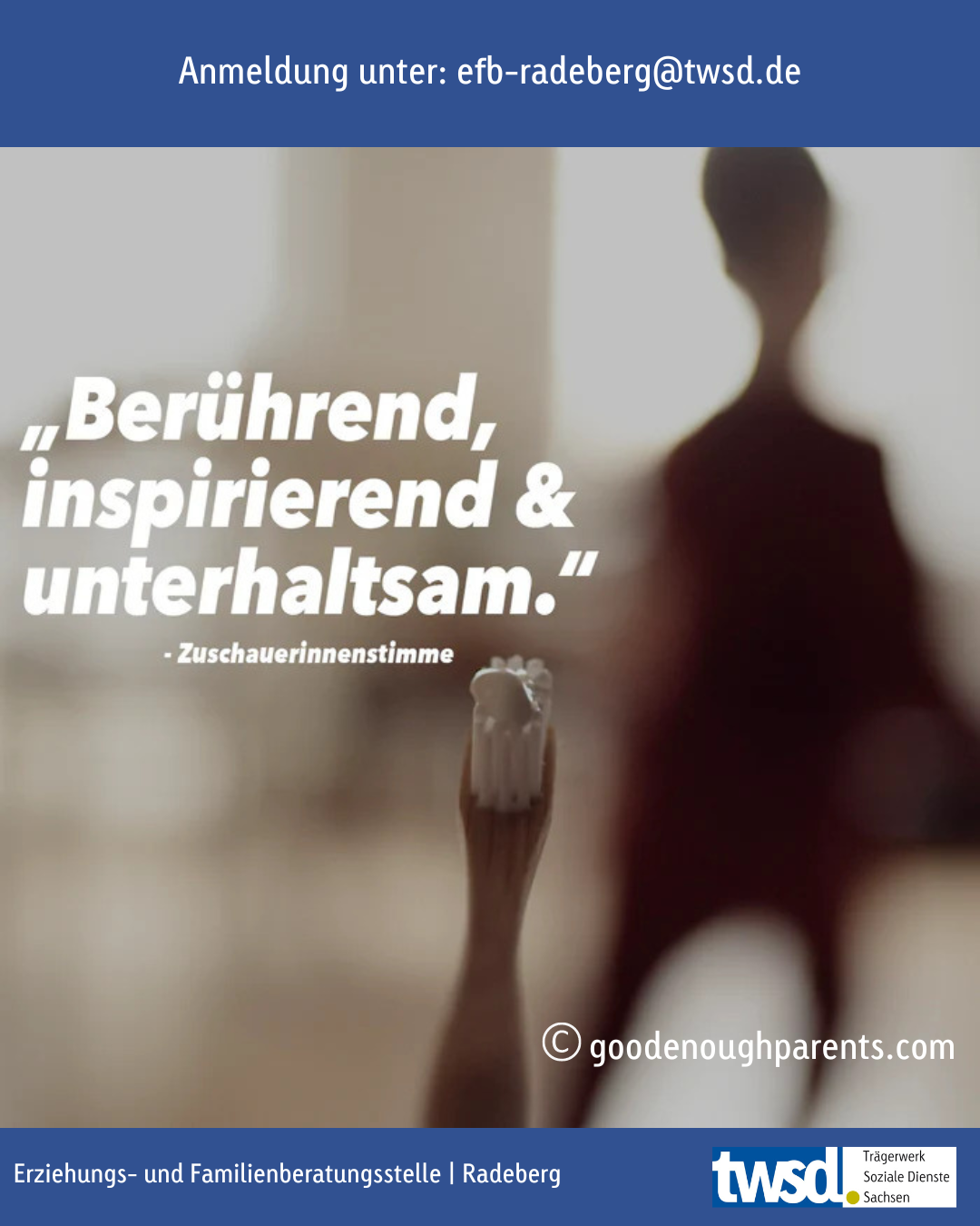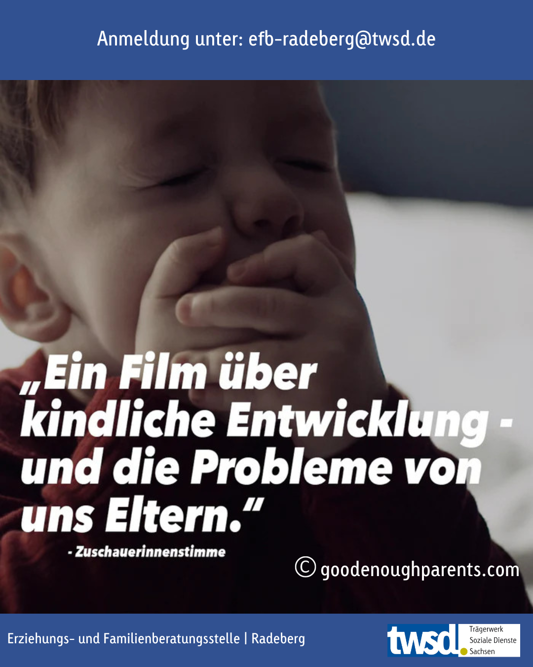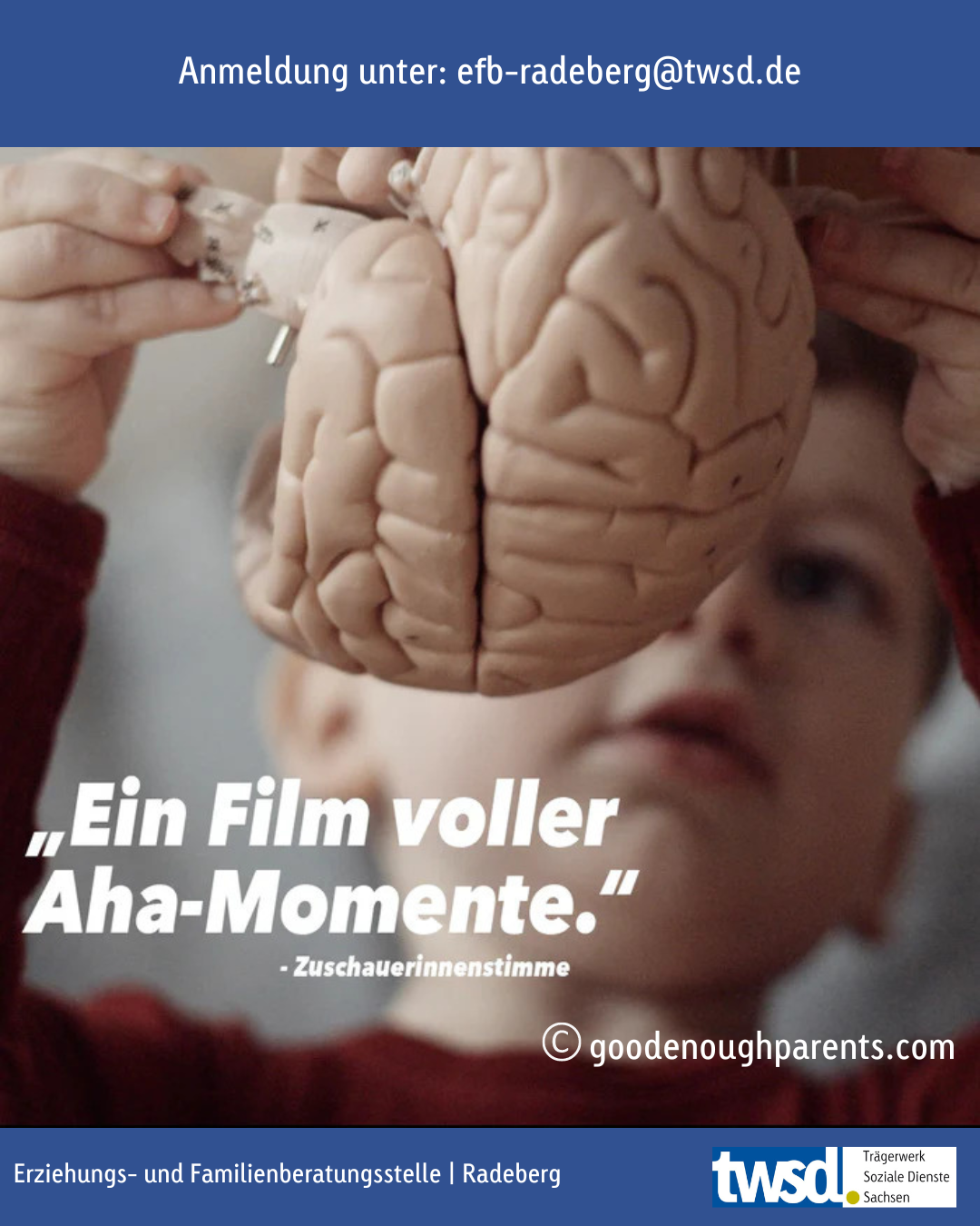 Und genau hier wird es nun richtig spannend. In unserer Erziehungs- und Familienberatungsstelle in Radeberg kannst Du Dir diese cineastische Kostbarkeit zu Gemüte führen und zwischen, „Jaja, genau! Genau das!!!“ über „Aha, stimmt, darüber habe ich noch gar nicht nachgedacht“ bis hin zu „Ach herrje, das arme Schw***“ schwanken.